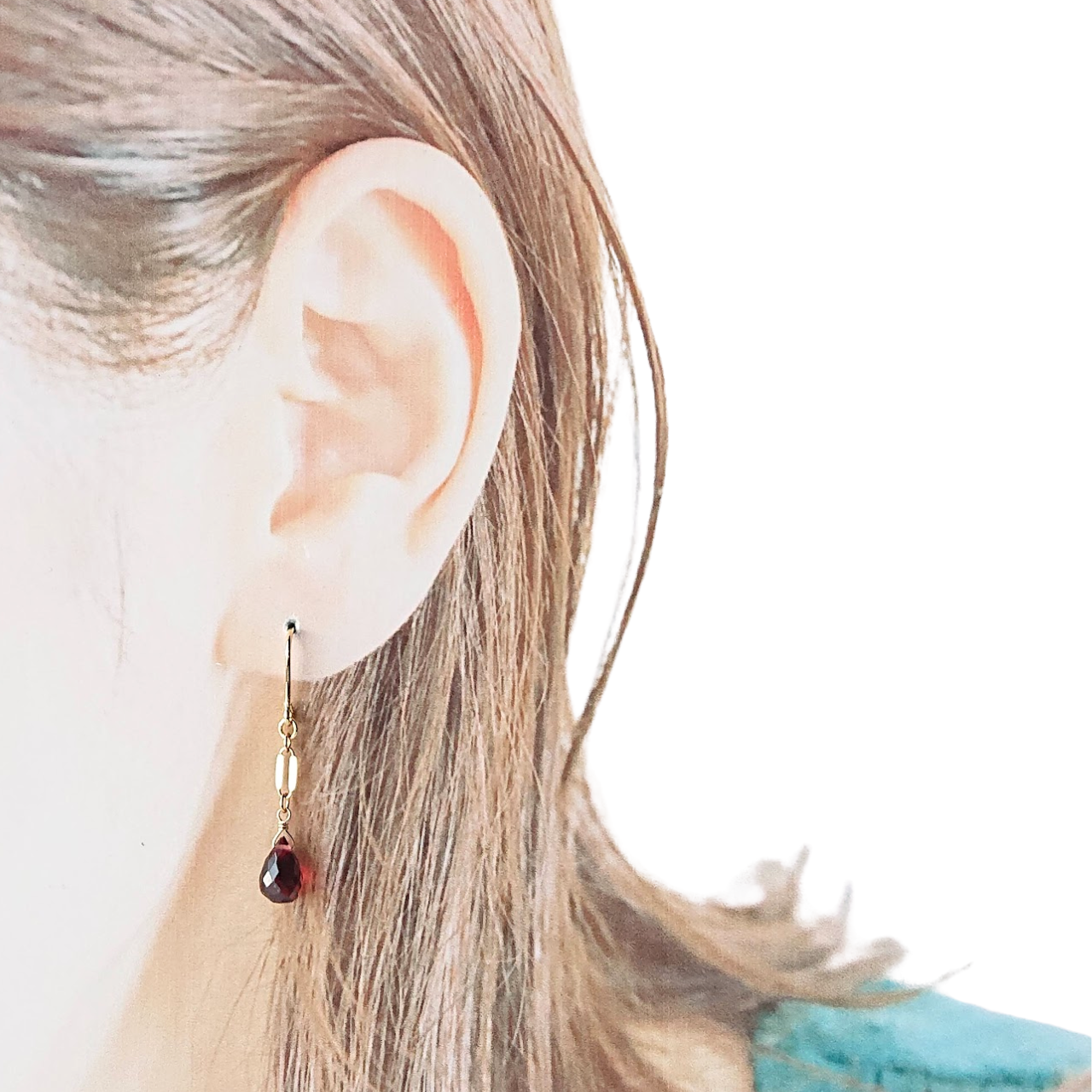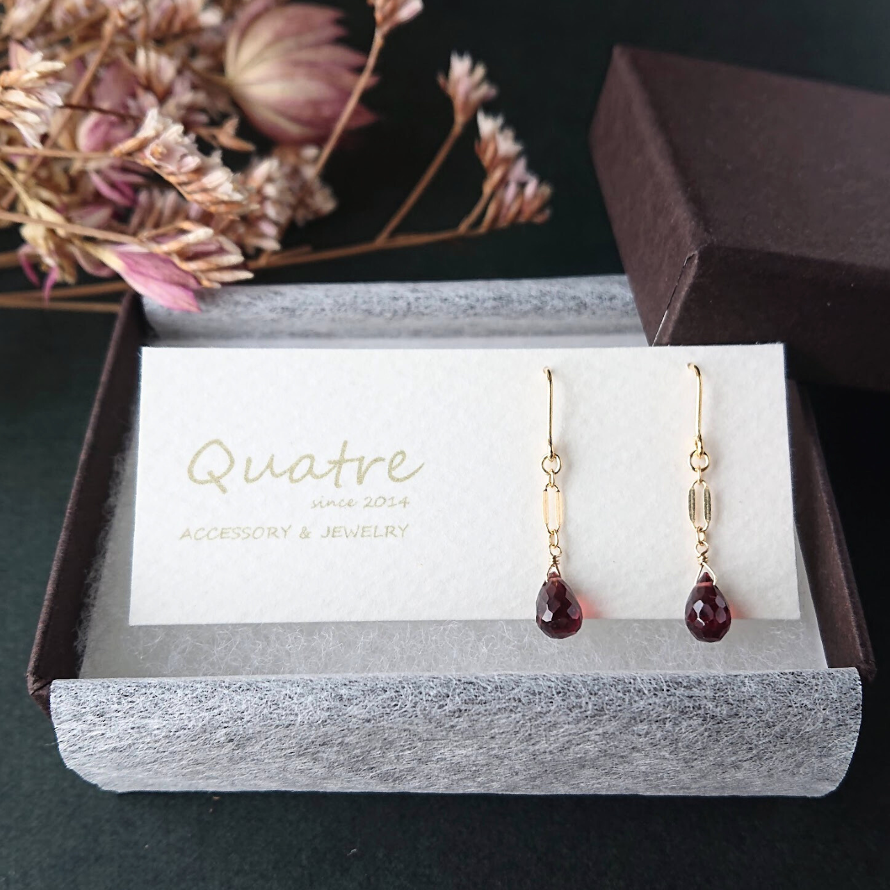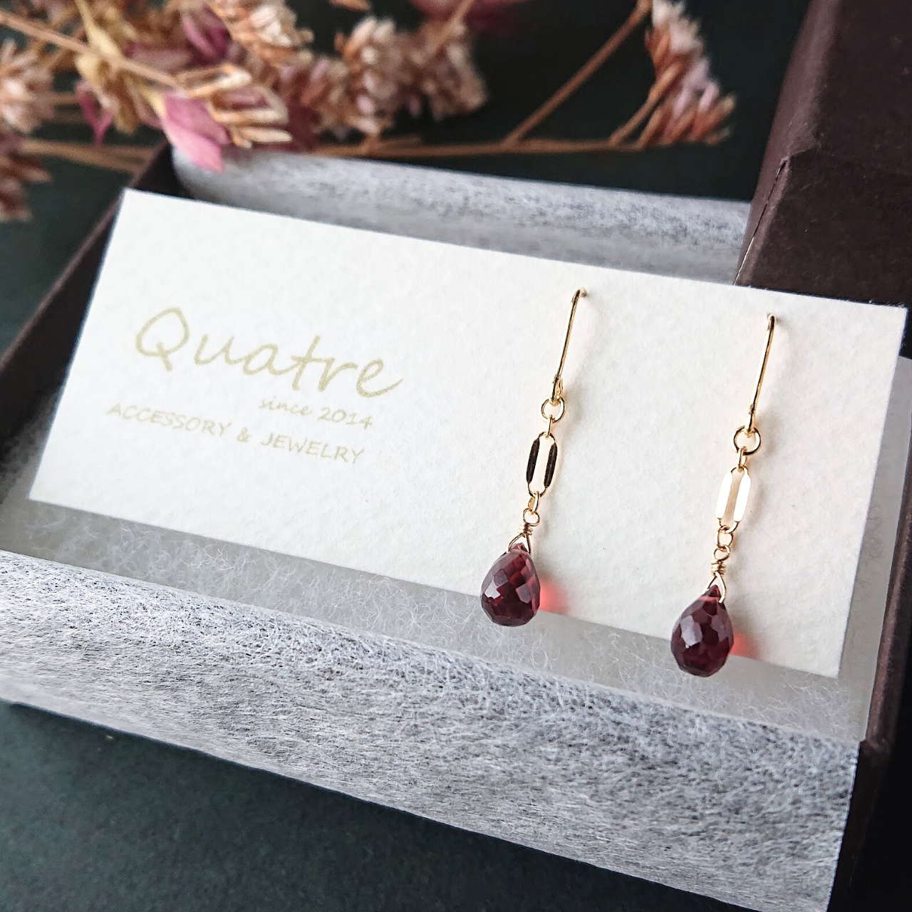 品の良いゴールドフィルドのパーツにガーネットをひと粒あしらいました。