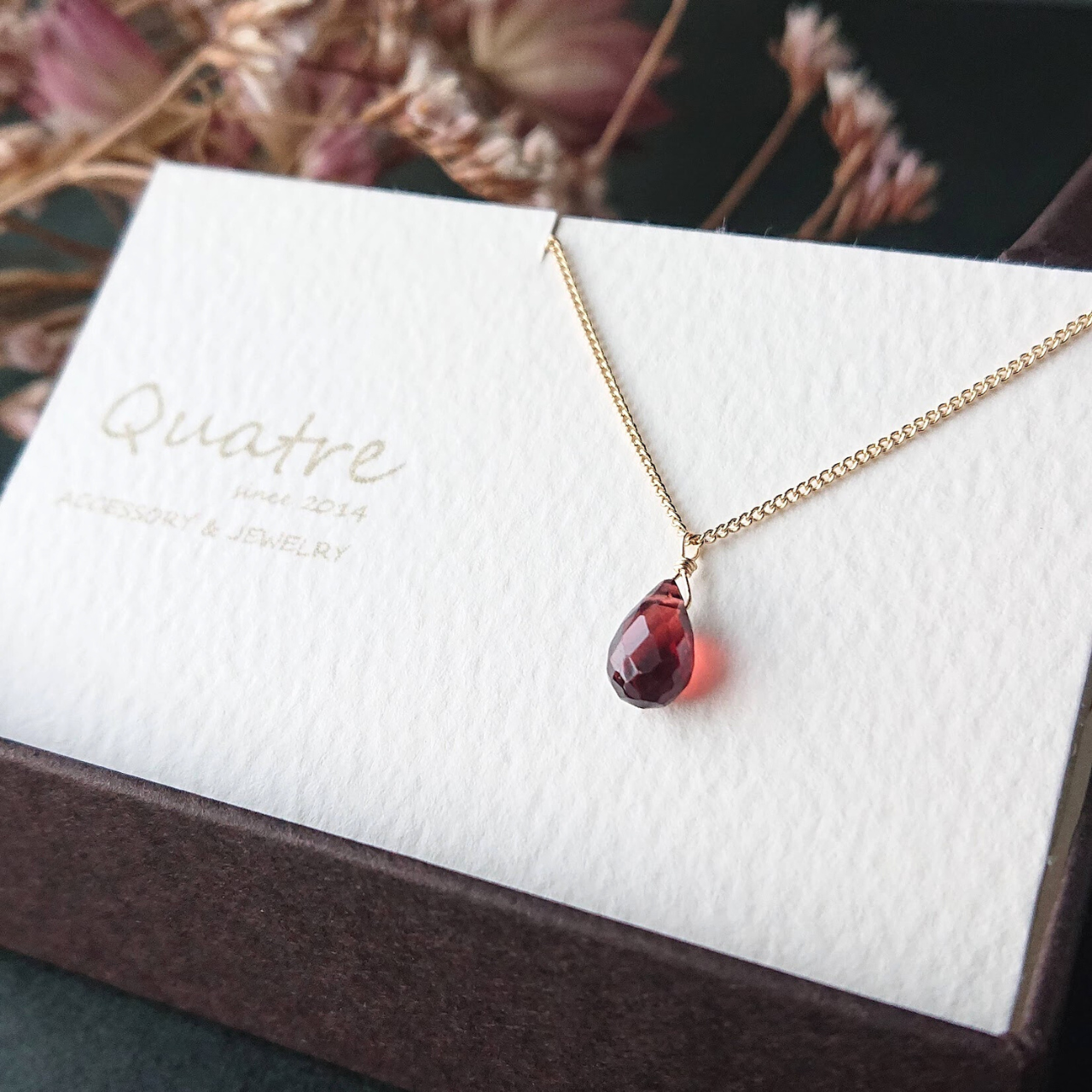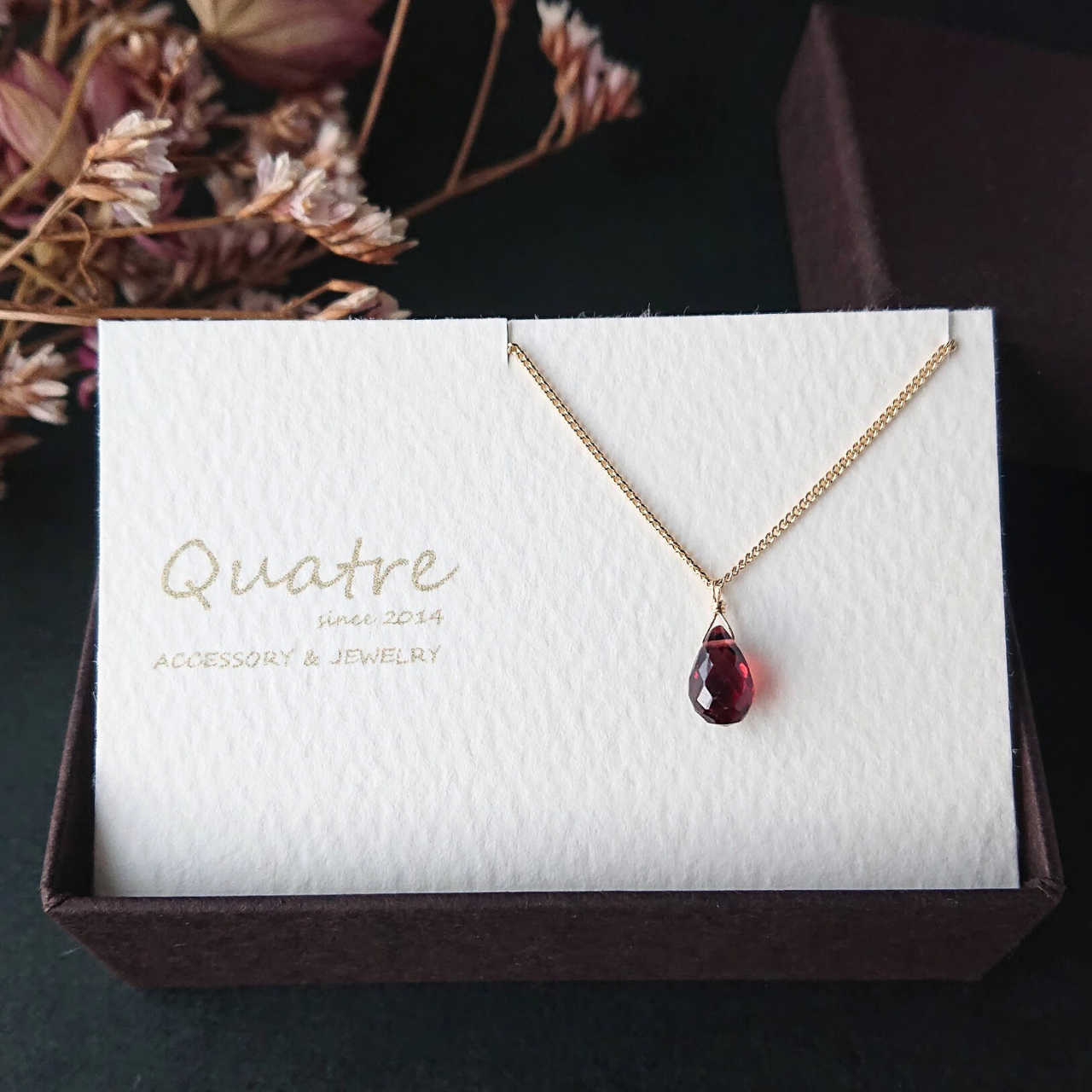 ガーネットをK14GFのワイヤーで巻き留め、喜平チェーンに通したシンプルなネックレスです。